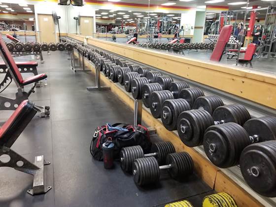 - Heavy dumbbells and a variety of old and new equipment