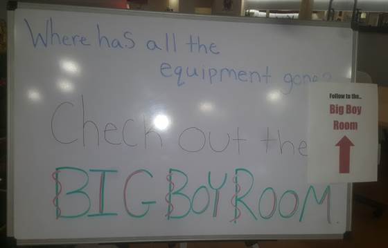 Today was my first time in the Zumba class and I loved it.. Suze has great music and moves...So this was me last week.. but today I was very disappointed.. many of the machines moved into the "Big Boys Room"...