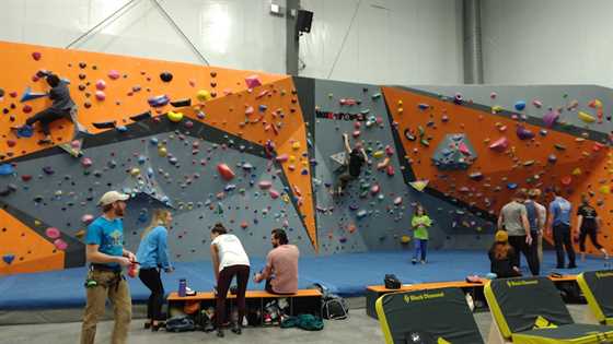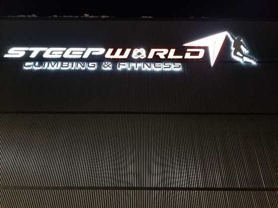 The new Steep World facility is amazing! 40 foot roped walls, a bouldering wall, and an upstairs area for beginners and training. There's a yoga studio and a fitness area. A wide open area in the middle means you can be running on the treadmill while watching your kids boulder. Or you can relax on the crash pad chairs while you relax your pumped forearms.It's definitely a fun and exciting place to get in shape. The hours are awesome, there's no excuse not to go in and work out while scaling some sick routes. To top it off the staff is incredibly friendly, willing to show you the ropes quite literally, and help with any gear purchases that you need.
