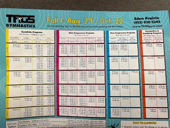 My child loves it here. But we are switching to another gym because of the parking lot, it’s absolute chaos, gridlock and beyond unsafe. They don’t stagger start/end times so every class is letting out at the exact same time every class is beginning (see photo of current schedule). People are waiting for parking spots, jockeying their way out (plan for 5-10 of time stuck in parking lot gridlock to leave) all the while kids are darting in and out of the parking lot from every direction. Chaos! Today my 4 year old was hit by a moving car who backed up as I was taking her out of her carseat. Door was still open and I had her hand thank god as i pulled her against my car after she brushed against the car as it reversed. My heart is still pounding.