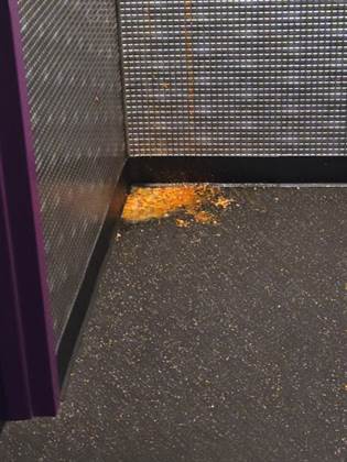 First time here and I wasn't impressed. Machines are great but I had to stare at this for over 2 hours. I kindly let the staff know about this and the staff member told me they have a night cleaning crew that will take care of it. Really? So it's nobody responsibility to take care of it or at least throw a paper towel over it? I know it's disgusting but I don't think us the guest have to stare at it for hours. Staff should do better