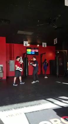 High intensity work out with measurable results. I am advanced in years(that sums that up), lazy to boot as we all are, let's get real. However, recently during vacation I caught a glimpse of myself and being appalled I decided right then and there NO MORE! When I got back from vacation I visited the 9Round gym here at Town Center and spoke to Justin Barnes (managing partner/owner), after a 30 min consultation I knew this was what I was looking for, a concentrated, self monitoring and best thing, supervised routine that if coupled with a healthy eating lifestyle ends with pounds being lost. I started only one month ago (3 times a week M-W-F), I went from 237 lbs to today weighing in at 199 lbs! And I am not eating cotton, I am on a somewhat modified Ketto diet and not eating past 6:00pm, maybe some nuts or pork rinds if starving, but you can do it to!Like me, you will feel better about yourself, you will be more focused, have more energy, etc. Go to your local grocery store and pick up a 20lb bag of dog food and walk around with it for an hour, that's just how much extra weight feels, so get off your couch and come do 9 rounds, now!