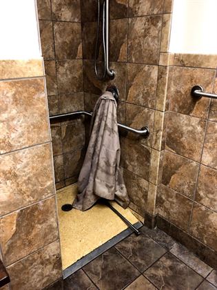 The men’s shower area does not have rubber floor mats for when you step in and out of a wet shower… As the photos will show I took a spell and split my elbow open… Went to the lady at the front desk and she says well that’s pretty bad I’ll let the manager know. As an insurance adjuster it seems to me other precautionary measures could’ve been taken by the owner to avert This kind of injury.