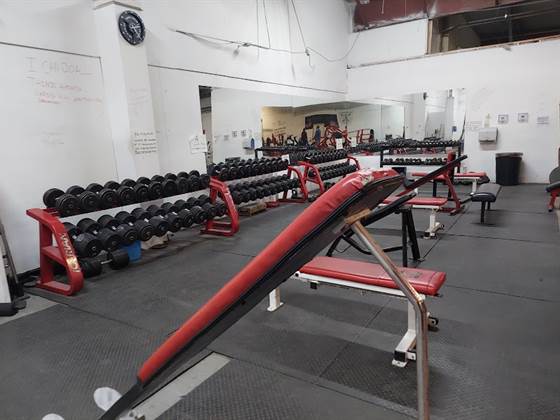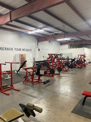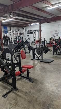 Awesome gym. Huge space with all the equipment you could need. Tons of racks, benches, and barbells. There are also some dumbbells and some weight machines. There is a large covered area with turf where you can use the prowler, stones, sandbags, DBs, etc.Very reasonable daily rate you can easily pay online. Call the number when you arrive and they can let you in remotely or in-person